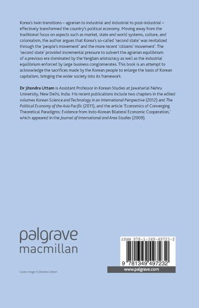 Korea's twin transitions - agrarian to industrial and industrial to post-industrial - transformed the country's political economy. Moving away from the traditional focus on aspects such as market, culture, and colonialism, the author argues that Korea's 'second state' was revitalized through the 'people's movement' and 'citizens movement'.