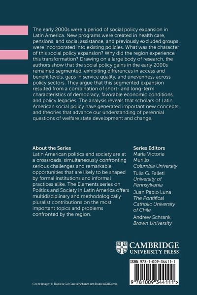 This Element shows that Latin America's social policy gains in the early 2000s remained segmented, exhibiting differences in access and benefit levels, gaps in service quality, and unevenness across policy sectors. It argues that this segmented expansion resulted due to the characteristics of democracy, economic conditions, and policy legacies.