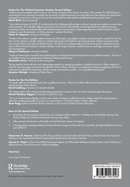 "Barma and Vogel have produced an outstanding collection of core texts on political economy, including both classic texts and some of the most important recent contributions. This reader strikes a perfect balance between theory and applied topics and highlights the interdisciplinary nature of the field. The volume familiarizes the reader with the most influential theoretical approaches to political economy. It also includes important empirical studies that illustrate the relevance of the field to understanding a wide range of contemporary and historical developments. Thanks to the editors' carefully crafted introductions it is accessible to students encountering this material for the first time, but the volume is equally useful as a sophisticated guide to the field for advanced graduate students and anyone else who wants to learn more about political economy. This book is an indispensable and up-to-date guide to political economy, and it will be essential reading for students taking a wide range of classes in political science, sociology, economics, history, and management."