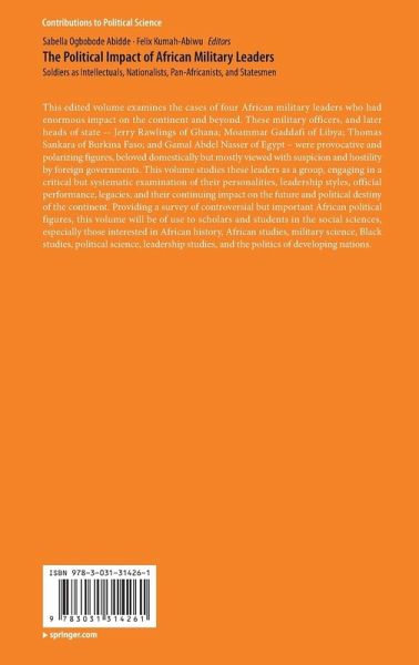 Section One: Military Engagement And Leadership In Africa.- 1. The Colonial Origins of African Military and Its Implications for African Politics.- 2. A Survey of Military Coup D'état 1953-2021.- 3. The Political Economy of Colonial and Post-Colonial African Military.- 4. Post-Colonialism and Elite Contestation for Political Power in Africa.- 5. Leadership, Unconstitutional Changes and Functions of Governments in East Africa.- Section Two: The Revolutionary Comrades In Ghana And Burkina Faso.-6. Jerry Rawlings and Thomas Sankara: Intellectuals, Populists, Revolutionaries, Pan-Africanists.- 7. Third Era of Jerry Rawlings as a Democratic President (1993-2001): Ideology and Leadership Style.- 8. Thomas Sankara: A Brief Biography.- 9. A Review of Thomas Sankara's Engagement with Education and Culture During the Burkina Revolution: 1983-1987.- 10. Thomas Sankara: Ideology and Leadership Style.- 11. Thomas Sankara: Mixed Legacies of a Charismatic Statesman.- Section Three: The Colonel And The Iconoclast In The Desert.-12. Muammar Gaddafi: An Assessment.- 13. NATO and Libya: A Decade of Instability and Unrest.- 14. Psycho-Biographical Analysis in International Politics: A Focus on Moammar Ghaddafi.- 15. Gaddafi, Tito and Libyan Non-Aligned Policy.- Section Four: A Soldier From The Cradle Of Civilization.- 16. Gamal Abdel Nasser: A Hero in the African and Arab World.- 17. Gamal Abdel Nasser: Hero in Arab Maghreb and Mashreq.- 18. The Sons of the Revolution: Umm Kulthum, Abdel Halim Hafez and the Nasserist Regime: Between Artistic Agency and Nationalism.- 19. Egypt and the Arab World: Five Decades After Nasser.