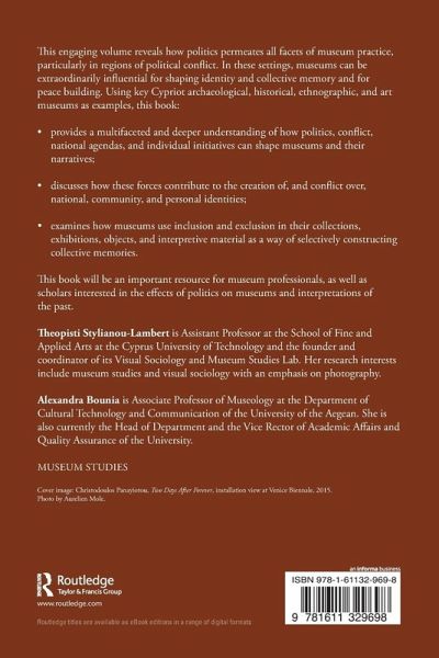 This engaging volume reveals how politics permeates all facets of museum practice, particularly in regions of political conflict. In these settings, museums can be extraordinarily influential for shaping identity and collective memory and for peace building. Using key Cypriote archaeological, historical, ethnographic, and art museums as examples, this book: