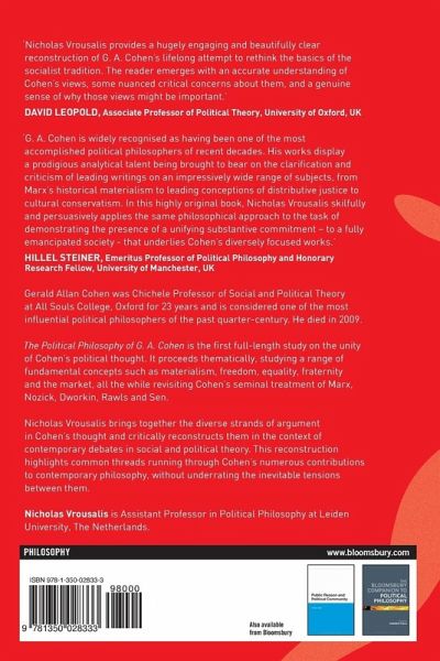 Gerald Allan Cohen was Chichele Professor of Social and Political Theory at All Souls College, Oxford for 23 years and is considered one of the most influential political philosophers of the past quarter-century. He died in 2009. The Political Philosophy of G. A. Cohen is the first full-length study on the unity of Cohen's political thought. It proceeds thematically, studying a range of fundamental concepts such as materialism, freedom, equality, fraternity and the market, all the while revisiting Cohen's seminal treatment of Marx, Nozick, Dworkin, Rawls and Sen. Nicholas Vrousalis brings together the diverse strands of argument in Cohen's thought and critically reconstructs them in the context of contemporary debates in social and political theory. This reconstruction highlights common threads running through Cohen's numerous contributions to contemporary philosophy, without underrating the inevitable tensions between them.