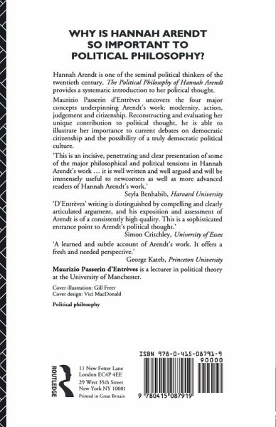 First published in 1993. This is a systematic introduction to the thought of one of the most important political philosophers of the twentieth century. The author uncovers the concepts of modernity, action, judgement and citizenship that underpin her work.