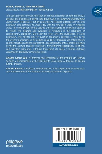 This book provides renewed reflection and critical discussion on John Holloway's political and theoretical thought. Two decades ago, in Change the World without Taking Power, Holloway set out on a path that he followed a decade later in Crack Capitalism and continues to walk today with his new book, Hope in Hopeless Times. The contributions in this volume critically analyze his innovative attempt to rethink the meaning and dynamics of revolution in the conditions of contemporary capitalism. More than ten years after the publication of Crack Capitalism, this volume aims to question Holloway's attempt, as well as his theoretical foundations in his original rereading of Marxism and Critical Theory and their relations with the characteristics adopted by the anti-capitalist struggles during the last two decades. Its authors, from different geographies, traditions, and scientific disciplines, establish throughout its pages a fruitful dialogue convened by Holloway's innovative ideas.