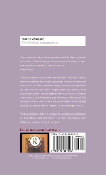 'Every now and then a book appears which is literally ahead of its time ... The Political Unconscious is such a book ... it sets new standards of what a classic work is.' - Slavoj Zizek In this ground-breaking and influential study, Fredric Jameson explores the complex place and function of literature within culture. A landmark publication, The Political Unconscious takes its place as one of the most meaningful works of the twentieth century. First published: 1983.