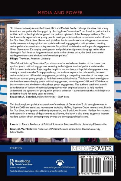 This book explores political expression of members of Generation Z old enough to vote in 2018 and 2020 on issues and movements including MeToo, Supreme Court nominations, March for Our Lives, immigration and family separation, and Black Lives Matter. Since generational dividing lines blur, we study 18 to 25-year-olds, capturing the oldest members of Generation Z along with the youngest Millennials. They share similarities both in their place in the life cycle and experiences of potentially defining events. Through examining some movements led by young adults and others led by older generations, as well as issues with varying salience, core theories are tested in multiple contexts, showing that when young adults protest or post about movements they align with, they become mobilized to participate in other ways, too, including contacting elected officials, which heightens the likelihood of their voices being heard in the halls of power.Perfect for students and courses in a variety of departments at all levels, the book is also aimed at readers curious about contemporary events and emerging political actors.