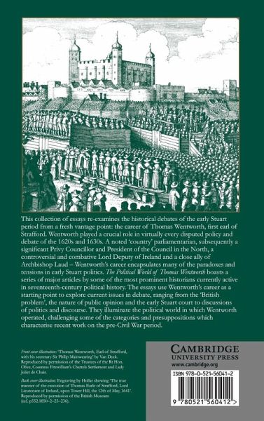 This collection of essays re-examines the historical debates of the early Stuart period from a fresh vantage point: the career of Thomas Wentworth, first Earl of Strafford. Wentworth played a crucial role in virtually every disputed policy and debate of the 1620s and 1630s. A noted 'country' parliamentarian, then a Privy Councillor and President of the Council in the North, a controversial Lord Deputy of Ireland and a close ally of Archbishop Laud - Wentworth's career encapsulates many of the paradoxes and tensions in early Stuart politics. This collection boasts a series of major articles by some of the most prominent historians currently active in seventeenth-century political history. The essays explore the nature of the political world under Charles I through Wentworth's career, challenging some of the categories and presuppositions which characterise recent work on the pre-Civil War period.