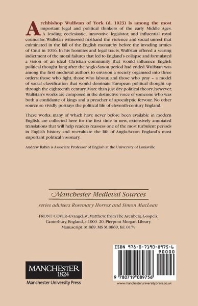 Archbishop Wulfstan of York (d. 1023) is among the most important legal and political thinkers of the early Middle Ages. A leading ecclesiastic, innovative legislator, and influential royal councilor, Wulfstan witnessed firsthand the violence and social unrest that culminated in the fall of the English monarchy before the invading armies of Cnut in 1016. In his homilies and legal tracts, Wulfstan offered a searing indictment of the moral failings that led to England's collapse and formulated a vision of an ideal Christian community that would influence English political thought long after the Anglo-Saxon period had ended. These works, many of which have never before been available in modern English, are collected here for the first time in new, extensively annotated translations that will help readers reassess one of the most turbulent periods in English history and re-evaluate the career of Anglo-Saxon England's most important political visionary.