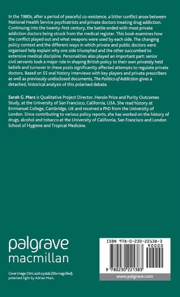 The Politics of Addiction examines power and policy-making in the context of a bitter conflict between private and publicly employed doctors treating addiction. Regulation was used by both the profession and the state to shape the treatment of addiction and who could provide it, with the media feeding into the process.