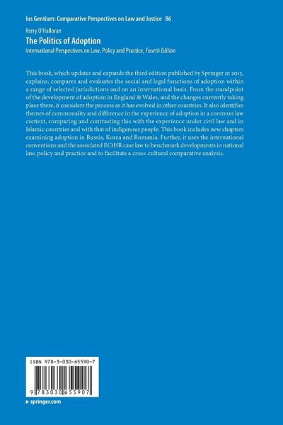 This book, which updates and expands the third edition published by Springer in 2015, explains, compares and evaluates the social and legal functions of adoption within a range of selected jurisdictions and on an international basis. From the standpoint of the development of adoption in England & Wales, and the changes currently taking place there, it considers the process as it has evolved in other countries. It also identifies themes of commonality and difference in the experience of adoption in a common law context, comparing and contrasting this with the experience under civil law and in Islamic countries and with that of indigenous people. This book includes new chapters examining adoption in Russia, Korea and Romania. Further, it uses the international conventions and the associated ECtHR case law to benchmark developments in national law, policy and practice and to facilitate a cross-cultural comparative analysis.
