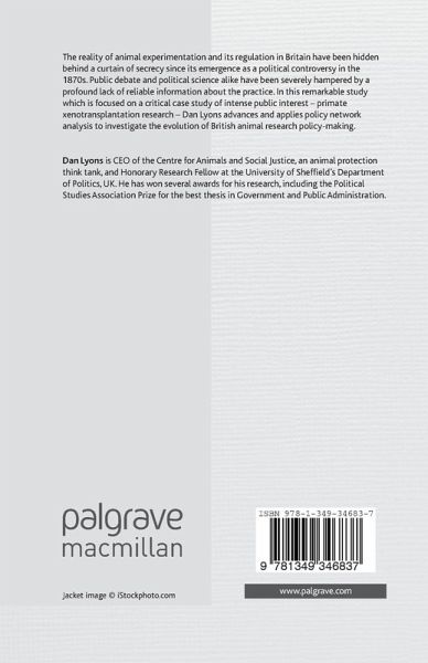 The reality of animal experimentation and its regulation in Britain have been hidden behind a curtain of secrecy since its emergence as a political controversy in the 1870s. Public debate and political science alike have been severely hampered by a profound lack of reliable information about the practice. In this remarkable study, Dan Lyons advances and applies policy network analysis to investigate the evolution of British animal research policy-making.