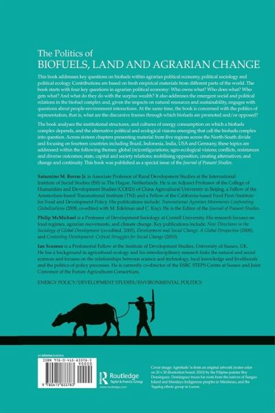 This book addresses key questions on biofuels within agrarian political economy, political sociology and political ecology. Contributions are based on fresh empirical materials from different parts of the world. The book starts with four key questions in agrarian political economy: Who owns what? Who does what? Who gets what? And what do they do with the surplus wealth? It also addresses the emergent social and political relations in the biofuel complex and, given the impacts on natural resources and sustainability, engages with questions about people-environment interactions. At the same time, the book is concerned with the politics of representation, that is, what are the discursive frames through which biofuels are promoted and/or opposed? The book analyses the institutional structures, and cultures of energy consumption on which a biofuels complex depends, and the alternative political and ecological visions emerging that call the biofuels complex into question. Across sixteen chapters presenting material from five regions across the North-South divide and focusing on fourteen countries including Brazil, Indonesia, India, USA and Germany, these topics are addressed within the following themes: global (re)configurations; agro-ecological visions; conflicts, resistances and diverse outcomes; state, capital and society relations; mobilising opposition, creating alternatives; and change and continuity. This book was published as a special issue of the Journal of Peasant Studies.