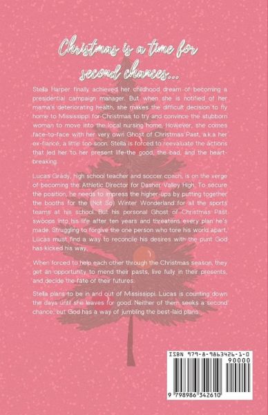 Stella Harper finally achieved her childhood dream of becoming a presidential campaign manager. But when she is notified of her mama's deteriorating health, she makes the difficult decision to fly home to Mississippi for Christmas to try and convince the stubborn woman to move into the local nursing home. However, she comes face-to-face with her very own Ghost of Christmas Past, a.k.a her ex-fiancé, a little too soon. Stella is forced to reevaluate the actions that led her to her present life-the good, the bad, and the heart-breaking. Lucas Grady, high school teacher and soccer coach, is on the verge of becoming the Athletic Director for Dasher Valley High. To secure the position, he needs to impress the higher-ups by putting together the booths for the (Not So) Winter Wonderland for all the sports teams at his school. But his personal Ghost of Christmas Past swoops into his life after ten years and threatens every plan he's made. Struggling to forgive the one person who tore his world apart, Lucas must find a way to reconcile his desires with the punt God has kicked his way. When forced to help each other through the Christmas season, they get an opportunity to mend their pasts, live fully in their presents, and decide the fate of their futures. Stella plans to be in and out of Mississippi. Lucas is counting down the days until she leaves for good. Neither seeks a second chance, but God has a way of jumbling the best-laid plans.