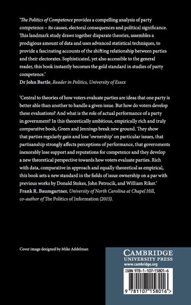 An in-depth and over-time analysis of public opinion about party competence on issues in the US, UK, Canada, Australia and Germany, revealing how issue ownership, government performance and generalised competence shape public opinion and how their causes and consequences should shape our understanding of parties, voting and elections.