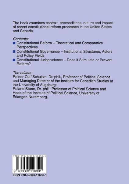 Thema des englischsprachigen Bandes sind Verfassungspolitik und-reform in den USA und Kanada. Untersucht werden die Institutionen derLegislative und Exekutive, Föderalismus, Haushalts- und Minderheitenpolitik und die Verfassungsgerichtsbarkeit.