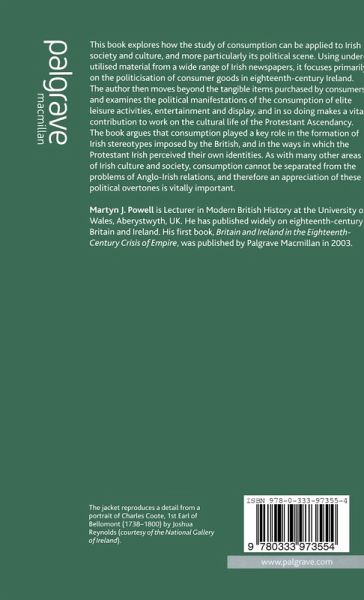 'The study, while highlighting key periods in Irish politics, forwards the argument for a link between English consumption and Irish emulation in a thought-provoking way and helps to fill a gap in a much neglected area which will surely advance and encourage further debate on the consumption patterns of Ireland in the eighteenth-century.' - Lisa Griffith, Eighteenth-Century Ireland