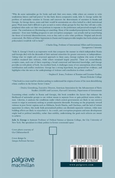 "Julie A. George s book is an impressive work that compares the manner in which independent Russia and Georgia deal with the demands of their national minorities for greater autonomy or independence.Taking what we might call a structural approach to these cases, George explains why some of these conflicts escalated into violence, while others remained largely peaceful. These are extraordinarily complex cases, each one of them requiring a broad contextual and historical knowledge, and George provides us with plenty of both.An excellent book, it challenges many of our assumptions about ethnic mobilization and conflict resolution. George has a strong hypothesis, has garnered her evidence, and highlights what she sees as the underpinnings of violence and conciliation in ethnic conflicts." - Stephen F. Jones, Professor of Russian and Eurasian Studies, Mount Holyoke College
