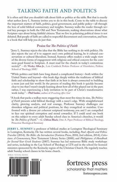 The Politics of Faith addresses key biblical texts and their intersection with questions of good government, social policy, and societal leadership. It speaks to Christians and others who seek to ponder and discuss the role of faith and Bible in their decisions about civic politics and faithful citizenship. This book aims to enable readers to see more clearly that the Bible does speak about the kinds of economic and social policies a nation should adopt. It will empower them to claim the message of Scripture in favor of policies that promote the good of those who are disadvantaged and the good of the community. It will help them make the argument that the Bible calls for laws and policies that expect the wealthy to contribute to the good of all, including policies and laws that are not always to their personal financial advantage. The author explores ways the Old Testament shows God's concern for social structures, the ideal early church community in Acts, and how the Gospel of Matthew shows concern for social structures in the ministry of Jesus. The final section looks at the writings of Paul, showing how they demand certain kinds of political commitments. This book will help readers talk about how a deeper understanding of Scripture can affect how one votes and the kinds of policies one supports. Each chapter ends with a set of questions for discussion that both review what is in the chapter and provoke discussion about faithful action.