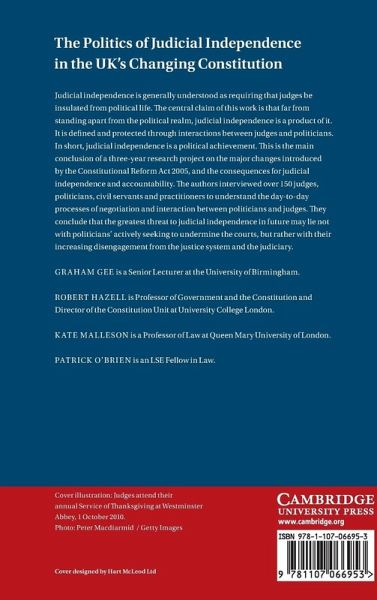Judicial independence is generally understood as requiring that judges must be insulated from political life. The central claim of this work is that far from standing apart from the political realm, judicial independence is a product of it. It is defined and protected through interactions between judges and politicians. In short, judicial independence is a political achievement. This is the main conclusion of a three-year research project on the major changes introduced by the Constitutional Reform Act 2005, and the consequences for judicial independence and accountability. The authors interviewed over 150 judges, politicians, civil servants and practitioners to understand the day-to-day processes of negotiation and interaction between politicians and judges. They conclude that the greatest threat to judicial independence in future may lie not from politicians actively seeking to undermine the courts, but rather from their increasing disengagement from the justice system and the judiciary.