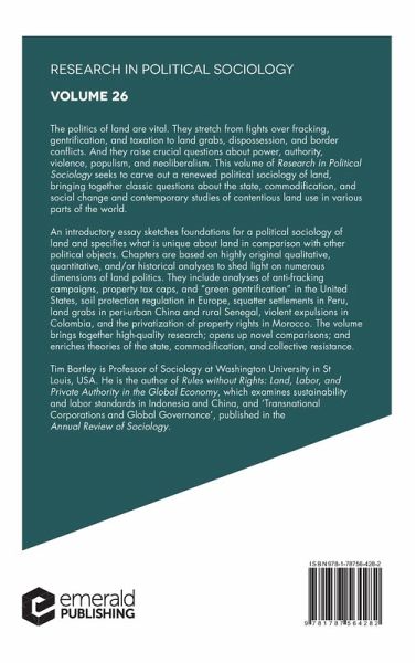 This volume renews the political sociology of land. Chapters examine dynamics of political control and contention in a range of settings, including land grabs in Asia and Africa, expulsions and territorial control in South America, environmental regulation in Europe, and controversies over fracking, gentrification, and property taxes in the USA.
