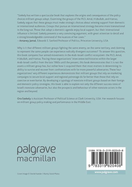 This book compares the performances of four key non-state actors in the Arab-Israeli conflict ecosystem: the PLO, Hamas, Hizbullah, and Amal. It argues that it is not the assets a militant group has, but rather how it acquired them that matters in explaining the variation in these actors' abilities to militarily resist and politically recover from confrontations with far more powerful adversaries. Groups that rely on marketing campaigns to secure local support and regional patronage do far better than those that rely on coercion or even barter. The book develops a typology of organizations based on their foreign and domestic policies, which has interesting implications for other non-state actors, such as ISIS. It is based on field research in Jordan, Lebanon, Israel, the West Bank, Egypt, and Syria, including interviews with members of a range of Lebanese and Palestinian militant groups, as well as politicians, UN staff, journalists, and members of the Jordanian and Israeli armies