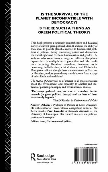 A balanced and comprehensive survey of current green political ideas - their varying responses to fundamental problems in political theory and their relationships with other ideological traditions.