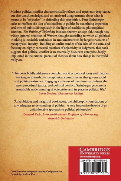 Modern political conflict characteristically reflects and represents deep-seated but also unacknowledged and un-analyzed disagreements about what it means to be 'objective'. In defending this proposition, Peter J. Steinberger seeks to reaffirm the idea of rationalism in politics by examining important problems of public life explicitly in the light of established philosophical doctrine. The Politics of Objectivity invokes, thereby, an age-old, though now widely ignored, tradition of western thought according to which all political thinking is inevitably embedded in and underwritten by larger structures of metaphysical inquiry. Building on earlier studies of the idea of the state, and focusing on highly contested practices of objectivity in judgement, this book suggests that political conflict is an essentially discursive enterprise deeply implicated in the rational pursuit of theories about how things in the world really are.