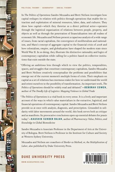 Sandro Mezzadra is Associate Professor in the Department of Arts at the University of Bologna. Brett Neilson is¿Professor in the Institute for¿Culture and Society at Western Sydney University. Mezzadra and Neilson are coauthors of Border as Method, or, the Multiplication of Labor, also published by Duke University Press.
