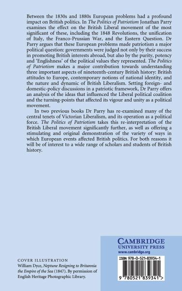 Between the 1830s and 1880s European problems had a profound impact on British politics. Jonathan Parry examines the effect on the British Liberal movement of the most significant of these, such as the 1848 Revolutions, the unification of Italy, the Franco-Prussian War and the Eastern Question, arguing that these European problems made patriotism a major political question: governments were judged by their success in promoting British interests abroad, but also by the purity, potency and 'Englishness' of the political values they represented. This volume makes a major contribution towards understanding three important aspects of nineteenth-century British history: British attitudes to Europe, contemporary notions of national identity, and the nature and dynamic of British Liberalism. Setting foreign and domestic policy discussions in a patriotic framework, Parry offers an analysis of the ideas that influenced the Liberal political coalition and the turning-points affecting its vigour and unity as a political movement.