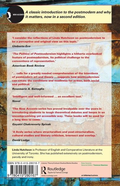 Working through the issue of representation, in art forms from fiction to photography, Linda Hutcheon sets out postmodernism's highly political challenge to the dominant ideologies of the western world.