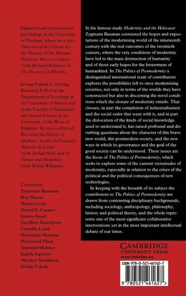 In his study Modernity and the Holocaust, Zygmunt Bauman contrasts the hopes and expectations of the modernising world of the nineteenth century with the real outcomes of the twentieth century, where the very conditions of modernity have led to the mass destruction of humanity and of those early hopes for the betterment of humankind. This volume explores the possibilities left to those once modernising societies, not only in terms of the worlds they have constructed but also in discerning the novel conditions which the closure of modernity entails. That closure, in part the completion of industrialisation and the social order that went with it, and in part the dislocation of the kinds of social knowledge used to understand it, has raised profound and disturbing questions about the character of this brave new world and the ways in which its governance and the goal of the good society can be understood. This volume explores some of the current vicissitudes of modernity, especially in relation to the crises of the political, and the political consequences of new technologies.