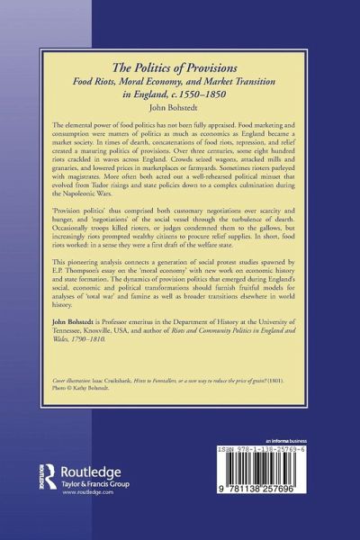 The 'politics of provisions' - forceful negotiations over sustenance - has created surprising contests in world history, particularly in times of market transition. In England a 'politics of provisions' evolved in a dialogue between popular riots and paternalist subsistence policies from Tudor dearths to the Victorian embrace of free-market doctrines. Hence provision politics was a core ingredient of both state-formation and of the emergence of the first market economy and society in England. This book is the first full-scale critical revision of E.P. Thompson's seminal model of the 'moral economy of the crowd', which has had huge influence across the social sciences. It is the first synthesis of the many dispersed studies of three centuries of marketing and negotiations by riot over subsistence. By explaining such long-term shifts in patterns of political negotiation from parish-pump to Privy Council, this study offers a new view of why food riots were a more compelling and lasting bone of contention than enclosures, wages or votes.