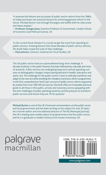 The first comprehensive 'bird's eye' account of public sector reform supported by references from over 400 official sources, this book is an invaluable guide to all those in the public, private and voluntary sectors grappling with the twin challenges of managing public spending austerity and the pressure in response to transform public services.