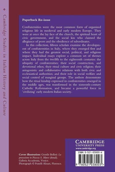 Confraternities were the most common form of organized religious life in medieval and early modern Europe. They were at once the lay face of the church, the spiritual heart of civic government, and the social kin who claimed the allegiance of peers and the obedience of subordinates. In this collection, fifteen scholars examine the development of confraternities in Italy, where they emerged first and had the greatest impact. Individual essays explore a common set of themes across Italy from the twelfth to the eighteenth centuries: the ubiquity of confraternities, social construction, and devotional ethos; their ritual culture and civic religion; their antagonistic and collaborative relations with both civic and ecclesiastical authorities; and their role in social welfare and social control of marginal groups. The authors demonstrate how the ritual kinship expressed in confraternities emerged in the Middle Ages and became a powerful force in 'civilizing' early modern Italian society.
