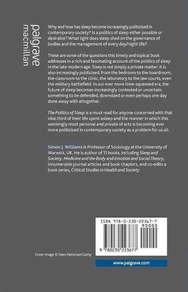 Why has sleep become increasingly politicized in contemporary society? This book provides an account of the politics of sleep in the late modern age. The future of sleep has become contested and uncertain: something to be defended, downsized or even perhaps (one day) done away with altogether.