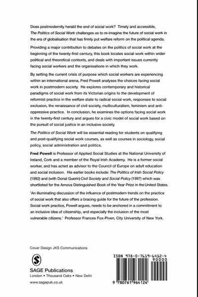 The Politics of Social Work provides a major contribution to debates on the politics of social work at the beginning of the 21st Century. It locates social work within wider political and theoretical debates and deals with important issues currently facing social workers and the organisations in which they work. By setting the current crisis of identity social workers are experiencing in international context, Fred Powell analyses the choices facing social work in postmodern society.