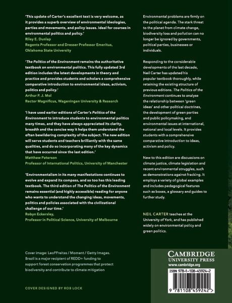 'This update of Carter's excellent text is very welcome, as it provides a superb overview of environmental ideologies, parties and movements, and policy issues. Ideal for courses in environmental politics and policy.' Riley E. Dunlap, Regents Professor and Dresser Professor Emeritus, Oklahoma State University