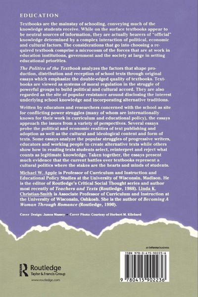 The Politics of the Texbook analyzes the factors that shape production, distribution and reception of school texts through original essays which emphasize the double-edged quality of textbooks. Textbooks are viewed as systems of moral regulation in the struggle of powerful groups to build political and cultural accord. They are also regarded as the site of popular resistance around discloding the interest underlying schoolknowledge and incorporating alternative traditions.