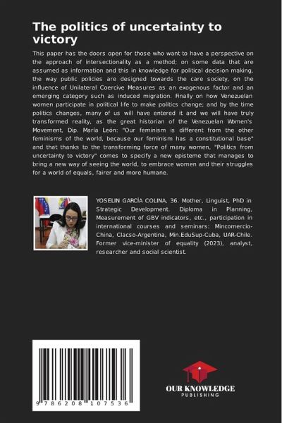 This paper has the doors open for those who want to have a perspective on the approach of intersectionality as a method; on some data that are assumed as information and this in knowledge for political decision making, the way public policies are designed towards the care society, on the influence of Unilateral Coercive Measures as an exogenous factor and an emerging category such as induced migration. Finally on how Venezuelan women participate in political life to make politics change; and by the time politics changes, many of us will have entered it and we will have truly transformed reality, as the great historian of the Venezuelan Women's Movement, Dip. María León: "Our feminism is different from the other feminisms of the world, because our feminism has a constitutional base" and that thanks to the transforming force of many women, "Politics from uncertainty to victory" comes to specify a new episteme that manages to bring a new way of seeing the world, to embrace women andtheir struggles for a world of equals, fairer and more humane.