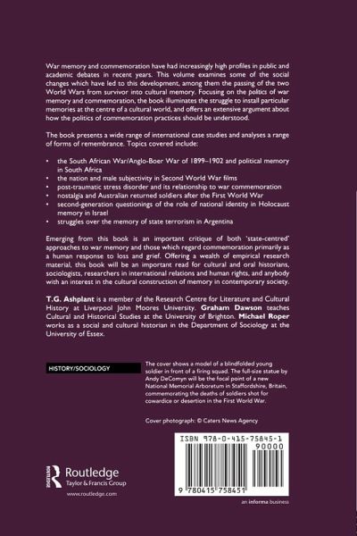 War memory and commemoration have had increasingly high profiles in public and academic debates in recent years. This volume examines some of the social changes which have led to this development, among them the passing of the two World Wars from survivor into cultural memory. Focusing on the politics of war memory and commemoration, the book illuminates the struggle to install particular memories at the centre of a cultural world, and offers an extensive argument about how the politics of commemoration practices should be understood.