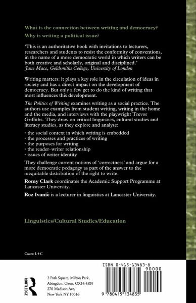 Writing matters: it plays a key role in the circulation of ideas in society and has a direct impact on the development of democracy. But only a few get to do the kind of writing that most influence this development. The Politics of Writing examines writing as a social practice. The authors draw on critical linguistics, cultural studies and literacy studies, as they explore and analyse: * the social context in which writing is embedded * the processes and practices of writing * the purposes of writing * the reader-writer relationship * issues of writer identity. They challenge current notions of 'correctness' and argue for a more democratic pedagogy as part of the answer to the inequitable distribution of the right to write.