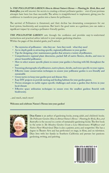 All gardeners are connected on the deepest level, striving always to "work with and connect with Nature." Pollinators are at risk, and their decline threatens our food system and ecosystems. But here's the good news: as a gardener, you can make a significant impact by creating a pollinator-friendly garden. 'THE POLLINATOR GARDEN: How to Attract Nature's Heroes - Planting for Birds, Bees, and Butterflies' cuts through the confusion and provides easy-to-understand instructions and practical advice tailored to your unique gardening situation. Within the pages of this detailed guide, you'll unlock: The mysteries of pollinators - who they are - how they work - what they need. An in-depth guide to attracting specific, regional pollinators to your garden. Tips for designing a low-maintenance garden that attracts a variety of pollinators. Comprehensive regional plant directories, packed full of native flowers, shrubs, and trees to attract bountiful pollinators. How to select season-specific plants to ensure your garden is buzzing with life throughout the year. Stunning photographs of pollinators, native plants, shrubs, and trees specific to your region. Easy DIY projects to provide nesting and feeding habitats for your garden guests. THE POLLINATOR GARDEN invites you to welcome and celebrate Nature's Heroes into your garden. Get ready to create a garden that provides a habitat for pollinators, adds vibrant beauty to your home, and contributes positively to your local ecosystem.