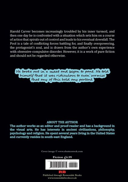 Harold Carver becomes increasingly troubled by his inner turmoil, and then one day he is confronted with a situation which sets him on a course of action that spirals out of control and leads to his eventual downfall. The Pool is a tale of conflicting forces battling for, and finally overpowering, the protagonist's soul, and is drawn from the author's own experience with obsessive-compulsive disorder. However, it is a work of pure fiction and should not be regarded otherwise.