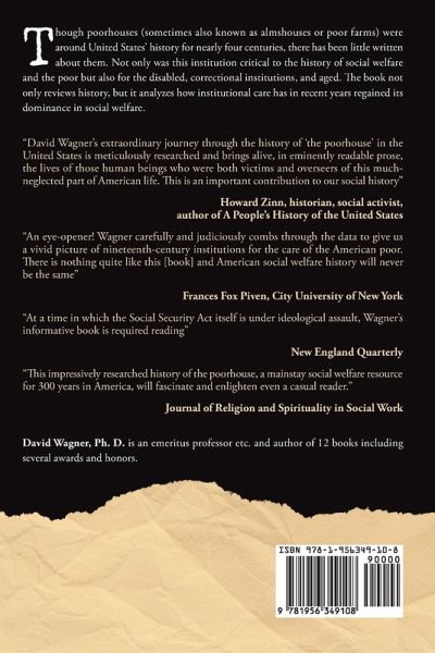 Though poorhouses (sometimes also known as almshouses or poor farms) were around United States' history for nearly four centuries, there has been little written about them. Not only was this institution critical to the history of social welfare and the poor but also for the disabled, correctional institutions, and aged. The book not only reviews history, but it analyzes how institutional care has in recent years regained its dominance in social welfare.