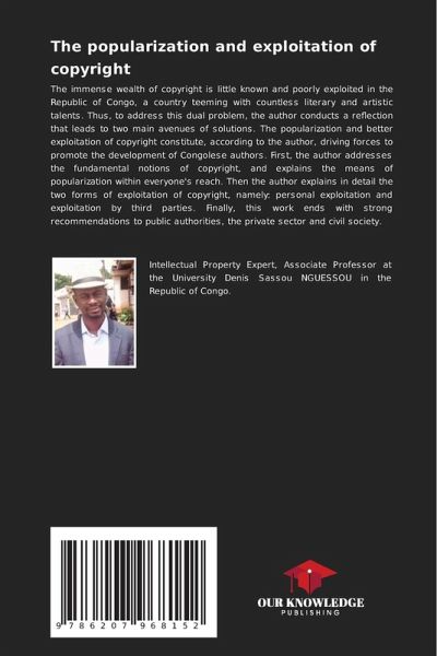 The immense wealth of copyright is little known and poorly exploited in the Republic of Congo, a country teeming with countless literary and artistic talents. Thus, to address this dual problem, the author conducts a reflection that leads to two main avenues of solutions. The popularization and better exploitation of copyright constitute, according to the author, driving forces to promote the development of Congolese authors. First, the author addresses the fundamental notions of copyright, and explains the means of popularization within everyone's reach. Then the author explains in detail the two forms of exploitation of copyright, namely: personal exploitation and exploitation by third parties. Finally, this work ends with strong recommendations to public authorities, the private sector and civil society.