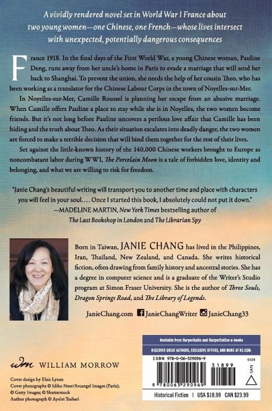 "Captivating from the outset, The Porcelain Moon tells a story of found family and forbidden love, while showcasing the lesser-known contribution of Chinese workers to the Allied cause in WWI. This tender and beautifully written story is Janie Chang at her best!"
