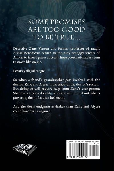 Some promises are too good to be true... Detective Zane Vrexon and former professor of magic Alyssa Benedictus return to the ashy, smoggy streets of Alviun to investigate a doctor whose prosthetic limbs seem to move like magic. Possibly illegal magic. So when a friend's grandmother gets involved with the doctor, Zane and Alyssa must uncover the doctor's secret. But doing so will require help from Zane's ever-present Shadow, a troubled entity who knows more about what's powering the limbs than he lets on. And the doc's endgame is darker than Zane and Alyssa could have ever imagined.