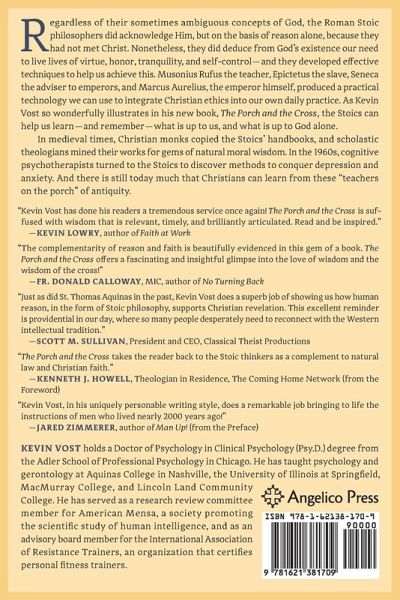 Regardless of their sometimes ambiguous concepts of God, the Roman Stoic philosophers did acknowledge Him, but on the basis of reason alone, because they had not met Christ. Nonetheless, they did deduce from God's existence our need to live lives of virtue, honor, tranquility, and self-control--and they developed effective techniques to help us achieve this. Musonius Rufus the teacher, Epictetus the slave, Seneca the adviser to emperors, and Marcus Aurelius, the emperor himself, produced a practical technology we can use to integrate Christian ethics into our own daily practice. As Kevin Vost so wonderfully illustrates in his new book, The Porch and the Cross, the Stoics can help us learn--and remember--what is up to us, and what is up to God alone. In medieval times, Christian monks copied the Stoics' handbooks, and scholastic theologians mined their works for gems of natural moral wisdom. In the 1960s, cognitive psychotherapists turned to the Stoics to discover methods to conquer depression and anxiety. And there is still today much that Christians can learn from these "teachers on the porch" of antiquity. "Kevin Vost has done his readers a tremendous service once again! The Porch and the Cross is suffused with wisdom that is relevant, timely, and brilliantly articulated. Read and be inspired."--KEVIN LOWRY, author of Faith at Work "The complementarity of reason and faith is beautifully evidenced in this gem of a book. The Porch and the Cross offers a fascinating and insightful glimpse into the love of wisdom and the wisdom of the cross!"--FR. DONALD CALLOWAY, MIC, author of No Turning Back "Just as did St. Thomas Aquinas in the past, Kevin Vost does a superb job of showing us how human reason, in the form of Stoic philosophy, supports Christian revelation. This excellent reminder is providential in our day, where so many people desperately need to reconnect with the Western intellectual tradition."--SCOTT M. SULLIVAN, President and CEO, Classical Theist Productions "The Porch and the Cross takes the reader back to the Stoic thinkers as a complement to natural law and Christian faith."--KENNETH J. HOWELL, Theologian in Residence, The Coming Home Network (from the Foreword) "Kevin Vost, in his uniquely personable writing style, does a remarkable job bringing to life the instructions of men who lived nearly 2000 years ago!"--JARED ZIMMERER, author of Man Up! (from the Preface) Kevin Vost holds a Doctor of Psychology in Clinical Psychology (Psy.D.) degree from the Adler School of Professional Psychology in Chicago. He has taught psychology and gerontology at Aquinas College in Nashville, the University of Illinois at Springfield, MacMurray College, and Lincoln Land Community College. He has served as a research review committee member for American Mensa, a society promoting the scientific study of human intelligence, and as an advisory board member for the International Association of Resistance Trainers, an organization that certifies personal fitness trainers.