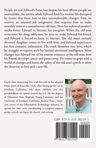 People are not Edward's forte, but despite his best efforts, people are unavoidable. An autistic adult, Edward finds his routine life disrupted by events that force him to face uncomfortable changes. First, he receives an unusual job assignment that requires him to make monthly visits to a cantankerous old man. Then his widowed mother's stroke forces Edward to become her caregiver. When the old man overcomes his drug addiction, he tries to make Edward his friend, and Edward is forced to learn to interact. The old man's recently divorced daughter comes to live with him, and Edward experiences his first romantic infatuation. His crush blossoms into love, which he struggles to express with his limited emotional intelligence. More changes tear Edward out of his routine existence as the old man, now his friend, develops cancer and passes away. He comes to grips with a world of changes and leaves the safety of the old man's porch to enter the doorway to love and a new life.