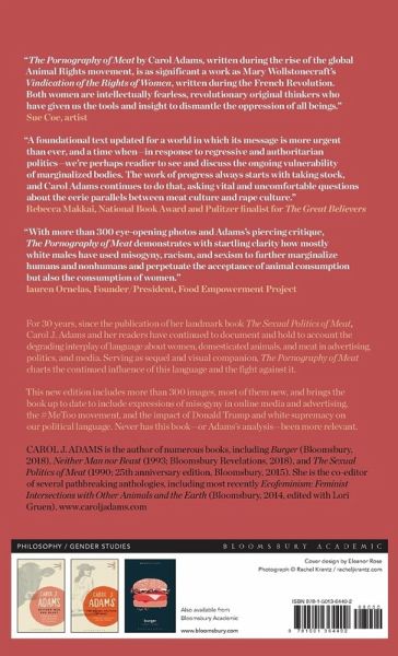 For 30 years, since the publication of her landmark book The Sexual Politics of Meat, Carol J. Adams and her readers have continued to document and hold to account the degrading interplay of language about women, domesticated animals, and meat in advertising, politics, and media. Serving as sequel and visual companion, The Pornography of Meat charts the continued influence of this language and the fight against it. This new edition includes more than 300 images, most of them new, and brings the book up to date to include expressions of misogyny in online media and advertising, the #MeToo movement, and the impact of Donald Trump and white supremacy on our political language. Never has this book--or Adams's analysis--been more relevant.